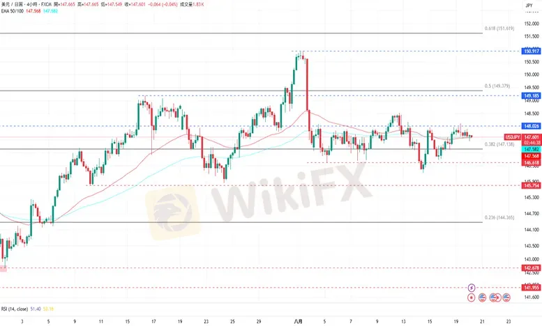 摘要:美元/日币(USDJPY):新闻事件:周二,美元/日元下跌至147.655日元。经济数据方面,美国7月新屋开工总数年化从135.8万户攀升至142.8万户,超过预期的129万户,美国7月营建许可总数从139.3万户降至135.4万户。周三,投资者将关注美联储公布货币政策会议纪要。本周稍晚,美联储将在怀俄明州的杰克森霍尔举行央行年会,同时鲍威尔也将发表演说,市场将关注他是否会释出9月降息讯号。据CM