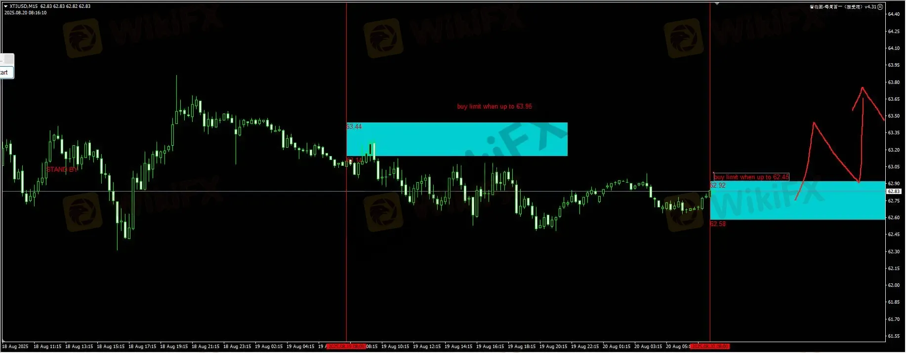 原油:需要等待动能突破信号才能考虑进一步的入场。日内建议密切关注价格突破至63.50附件的表现,然后关注回踩蓝色区域的机会。详细位置请咨询插件。