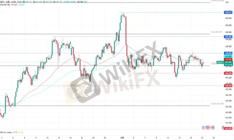 周三,美元/日元下跌至147.311日元。美国联邦住房金融局局长普尔特呼吁就房贷交易调查美联储理事库克,并暗示其可能涉嫌贷款诈欺。随后,美国总统特朗普也就此事在社交媒体表示「库克必须立即辞职」。美联储发布7月会议纪要显示,几乎所有美联储7月会议的与会者都认为,将基准利率维持在4.25%至4.50%的区间是合适的,理事鲍曼和华勒则持不同意见,倾向降息25个基点。周四,美国经济日程将公布当周初请失业金人数报告、8月标普全球PMI初值以及7月咨商会领先指标月率。