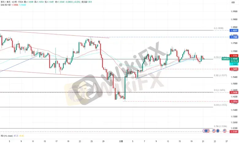 周三,欧元/美元上涨至1.16508美元。美国总统特朗普在美联储理事库克被指控涉嫌贷款诈欺后,在社交媒体表示「库克必须立即辞职」,库克则响应不会因为受到霸凌而辞职。美联储方面公布的7月会议纪要显示,几乎所有与会者都认为,将基准利率维持在4.25%至4.50%区间是适当的,理事鲍曼和华勒则持不同意见,倾向降息25个基点。周四,美国经济日程将公布当周初请失业金人数报告、8月标普全球PMI初值以及7月咨商会领先指标月率,同日欧元区也将公布法国、德国及欧元区PMI指数初值。