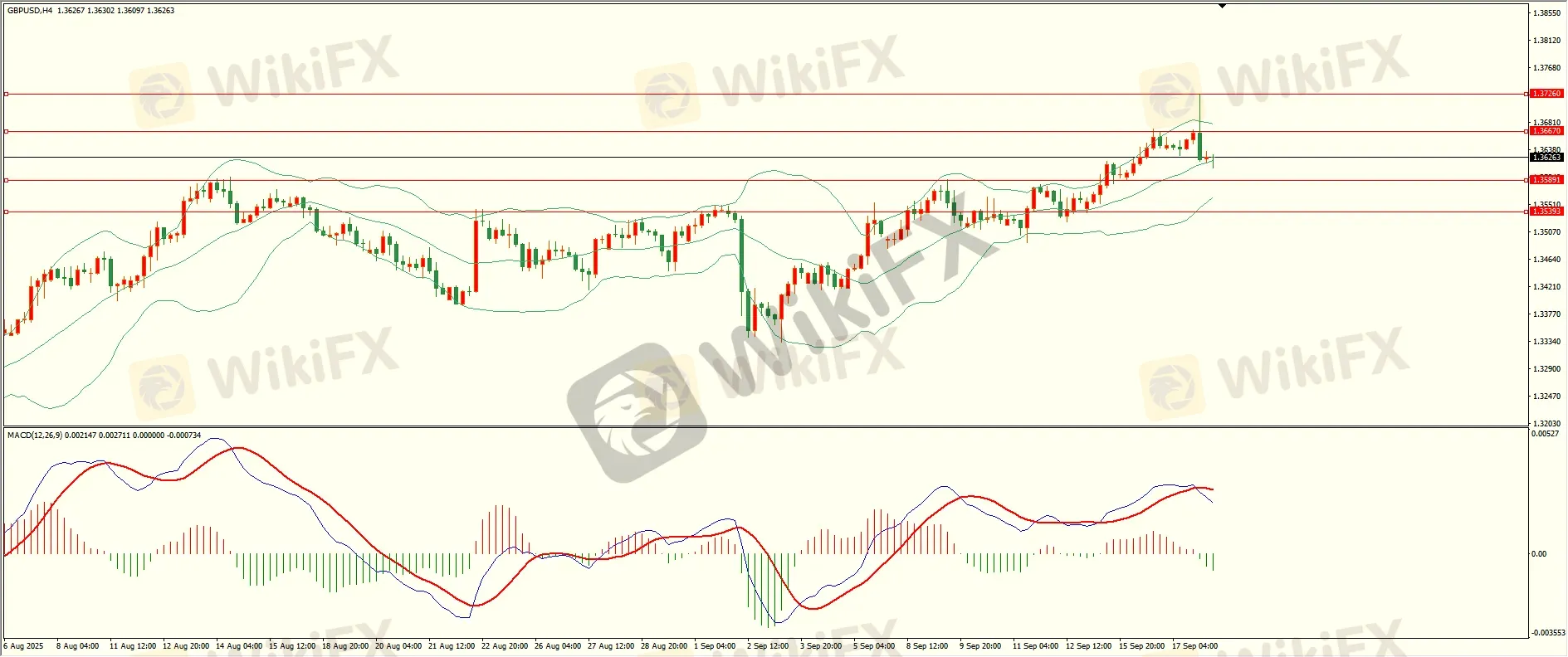 英镑昨日回调至第一支撑上方震荡上行,纽约盘时段触及第一阻力上方承压下行,日线报收上影线小阴线,上方阻力犹存,同时下方支撑并未失守,短线的多空争夺有望继续,从4H来看,布林中轨偏上,MACD零轴上方运行,日内下方首要支撑1.3589,第二支撑1.3530-40,上方阻力1.36654,1.3725,第一支撑在没有失守前短线有望回测第一阻力。