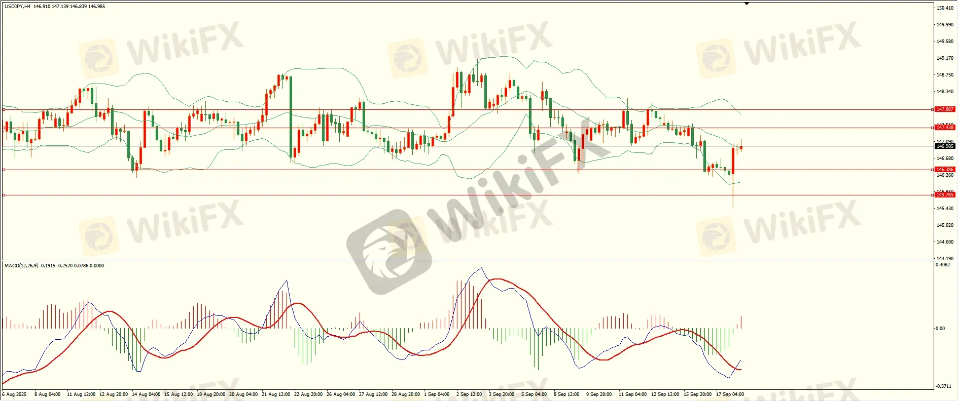 美日昨日小幅反弹后承压下行,尾盘时段回落至第二支撑上方展开反弹,日线报收下影线中阳线,收盘位置触及前阻力区,在没有收复前谨慎追涨,从4H来看,布林上下轨收窄,MACD零轴下方运行,日内上方首要阻力147.40-50,第二阻力147.85,下方支撑146.35,145.75,保持在第一阻力下方短线有望回测第一支撑。