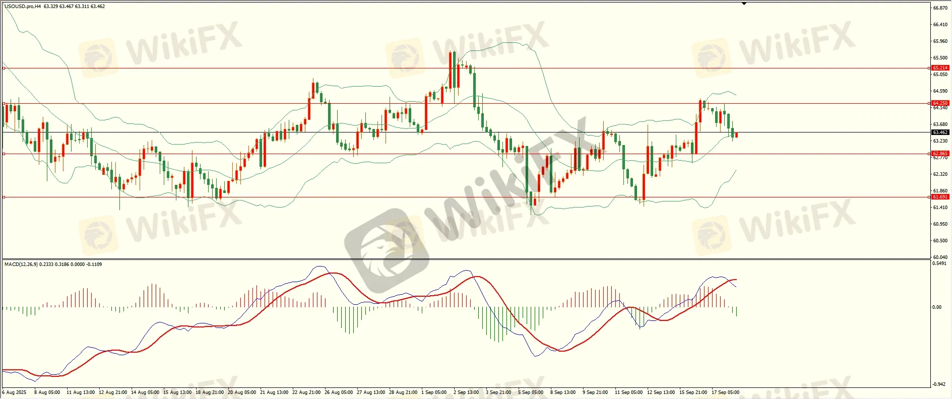 原油昨日回调至第一支撑震荡反弹,但上方空间受限,日线报收中阴线,目前上方阻力犹存,收复后本轮反弹方可继续,从4H来看,布林中轨偏上,MACD零轴上方运行,日内下方首要支撑62.85,第二支撑61.70,上方阻力64.25,65.20,保持在第一支撑上方短线有望回测第一阻力。