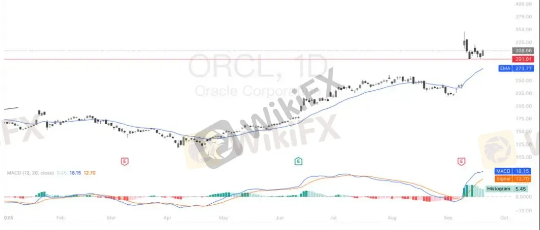受此利好推动,甲骨文股价隔夜上涨4%。技术面来看,股价在291美元附近获得支撑企稳,若能有效站稳该位置,后续仍有望延续上行。TikTok 合作协议若最终落地,将成为股价进一步上行的重要催化剂。