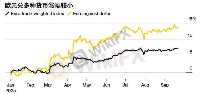美元下跌的部分原因是美联储降息预期、特朗普总统的关税政策以及央行独立性受到的攻击。这些事态发展让欧洲央行官员燃起了欧元可能在全球舞台上发挥更大作用的希望。