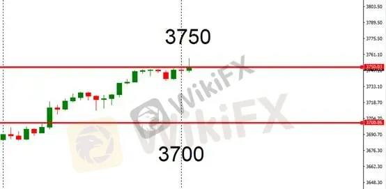 金价突破3700来到接近3750的区间,市场对于降息跟地缘政治的因素,促使黄金的价格往上升高,接下来可能会尝试挑战突破3750,去尝试3800的新高。