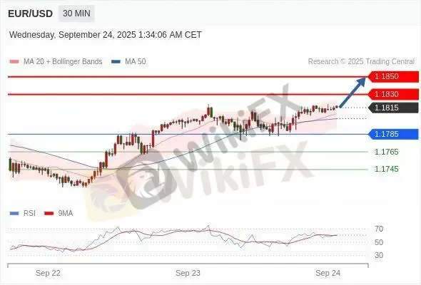 交易策略: 在1.1785之上,看涨,目标价位为1.1830,然后为1.1850。