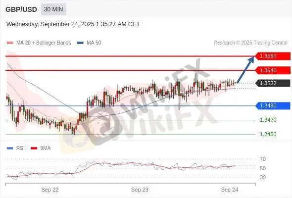 交易策略: 在1.3490之上,看涨,目标价位为1.3540,然后为1.3560。
