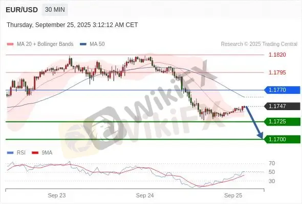 交易策略: 在1.1770之下,看跌,目标价位为1.1725 ,然后为1.1700。