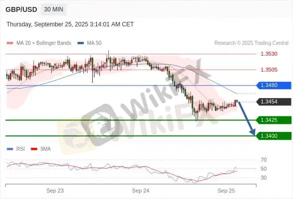 交易策略: 在1.3480之下,看跌,目标价位为1.3425,然后为1.3400。