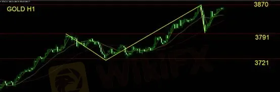 黄金于昨日欧盘时段开启瀑布下跌行情,下破3800后回踩前方水平支撑3791一带止跌反转向上。日内震荡幅度逾70美金。搭配月K收线,黄金于月K线表现为高档擎天阳柱,此K线出现于高位,形态为过热信号有望于本月份展开乖离收敛。