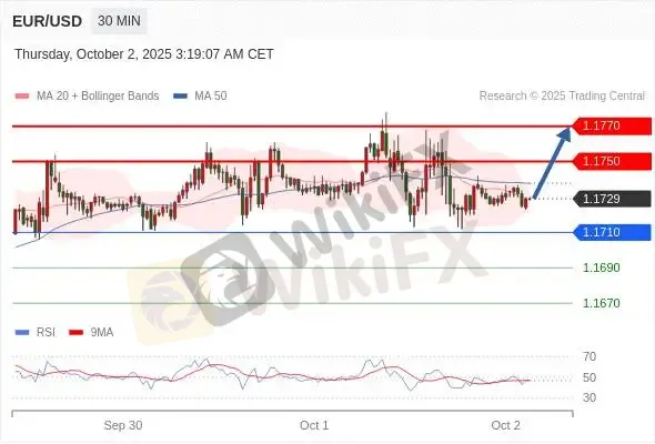 交易策略: 在1.1710之上,看涨,目标价位为1.1750,然后为1.1770。