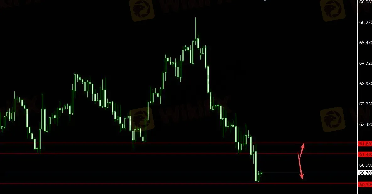 美元指数受支撑,原油反弹,关注支撑位60.300,4小时看多至61.800;关注压力位61.400,4小时看空至60.030。