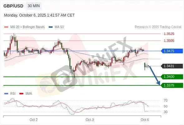 交易策略: 在1.3475之下,看跌,目标价位为1.3400,然后为1.3375。
