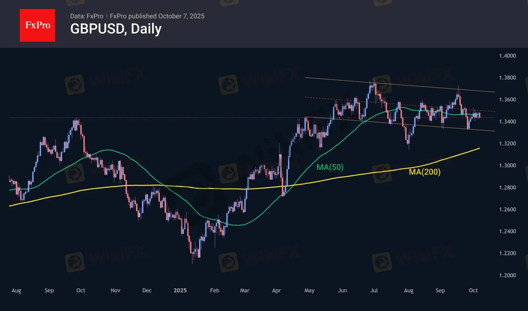 当前,英镑兑美元(GBPUSD)汇率为1.3440,处于该货币对自5月以来震荡区间的中间位置,不过其上升趋势自7月以来已开始逐渐逆转。目前的走势类似于盘整态势,市场在等待下一步动向,而考虑到该货币对长期缺乏明确趋势,下一步的走势可能极为关键。在此种形势下,英镑兑美元向下逆转的可能性略高。若出现深度回调,目标价位可能再次指向1.32区域,此处既是年初以来涨势的61.8%斐波那契回撤位,又与200日均线重合。然而,若美元发动全面攻势,该货币对可能在年底前回落至1.27,到2026年年中甚至可能下探至1.20。