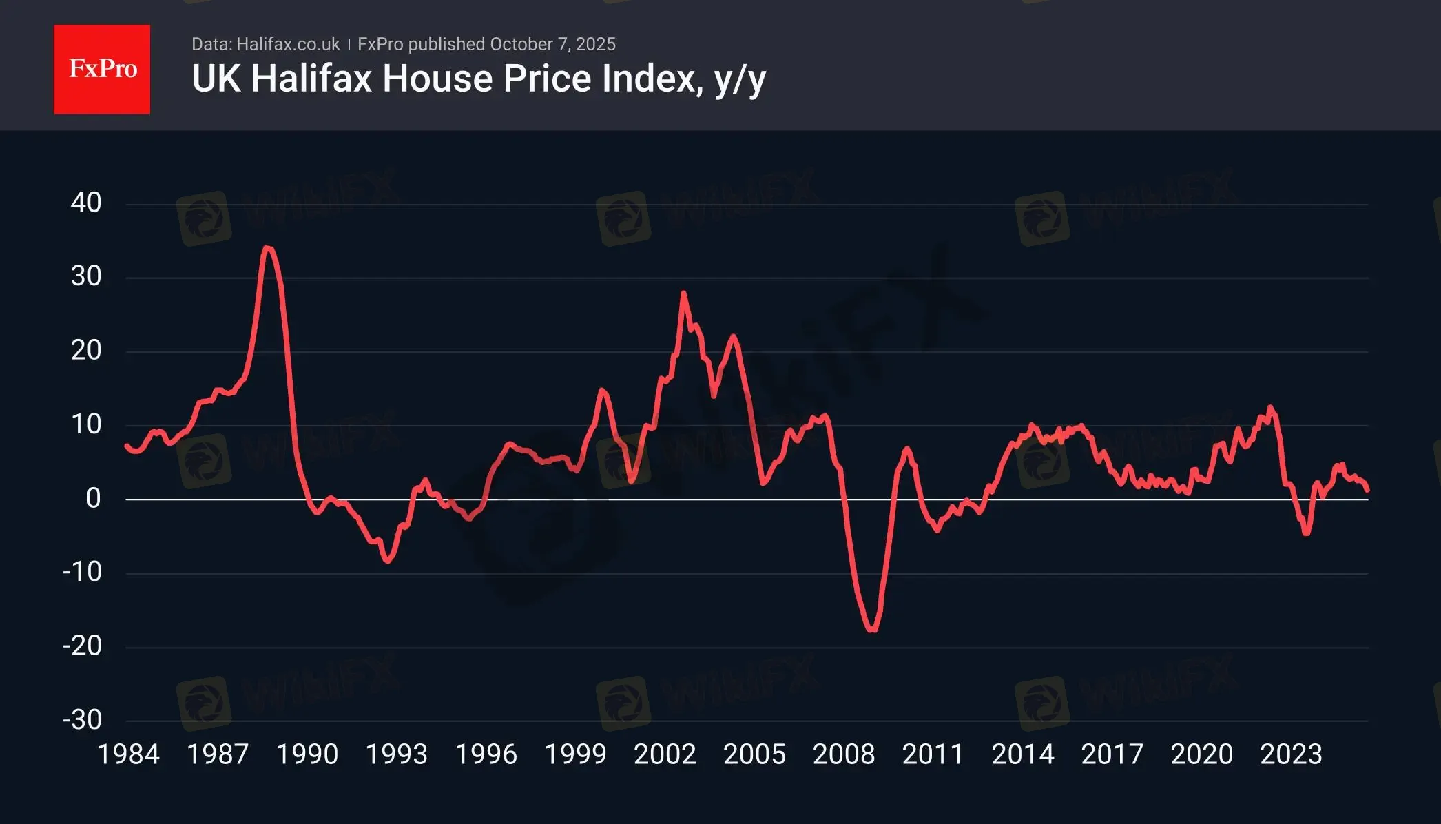 摘要:注:此文章由FxPro高级分析师Alex Kuptsikevich撰写哈利法克斯银行(Halifax)在其月度市场报告中称,9月房价下跌了0.3%,而8月房价上涨了相同的幅度。自年初以来,典型住宅的价格上涨了0.3%,而年度增长率已放缓至1.3%。与年初以来整体消费者物价指数2.7%的涨幅以及3.8%的同比涨幅相比,毫无疑问,英国房地产市场目前状况欠佳。房地产市场往往是消费者需求的晴雨表,当前的市