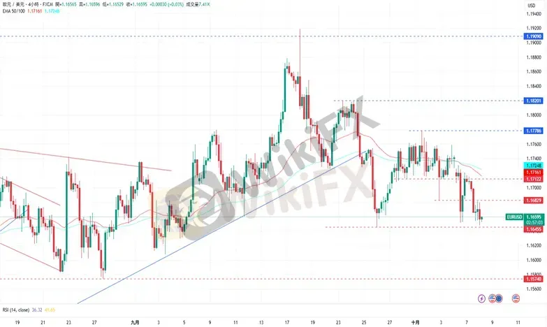 周二,欧元/美元下跌至1.16565美元。欧元在法国总理周一辞职后持续走弱,政治僵局的持续使得法国可能无法按时提交2026年预算案,意味着议会需通过临时法案,以授权从明年1月1日起的政府拨款,直至完整预算获批。关税方面,欧盟周二公布了旨在保护其境况不佳的钢铁业的新关税。欧盟委员会提议对所有超过配额的钢铁进口征收50%的关税,而配额将削减约45%。美元方面,周二的数据显示,美国9月纽约联储1年通膨预期由3.2%升至3.38%。周三,美联储将公布最新的货币政策会议纪要,而欧元区将公布德国8月季调后工业产出月率。