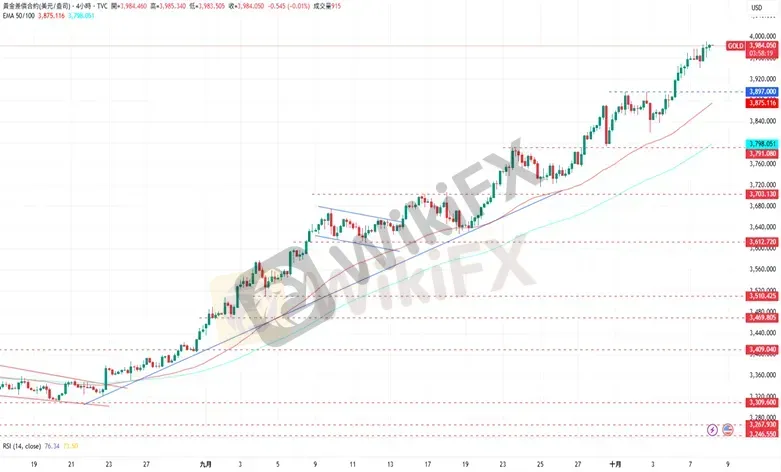 CPT Markets分析师指出,黄金价格在近期交易中持续上涨,逼近4000美元的目标价格。尽管上涨趋势完整,但仍需注意RSI指针显示价格持续位于超买区域。上涨方面,黄金目前的目标为4000美元水平。下跌方面,黄金初步的支撑为由阻力转变而成的3900美元水平,再来是10月2日低点3819美元。