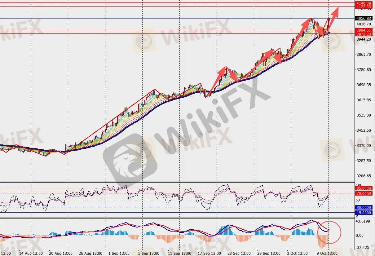 技术面:黄金H4级别高位反弹,并在48日多空分界线上方运行。此外,MACD双线和量能柱在零轴上方金叉。投资者资产配置中黄金的比例在2-10%间较适宜,而机构配置比例仍有空间提升。