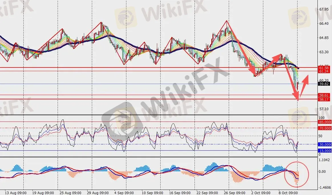 技术面:原油H4级别超跌反弹,但依旧在48日多空分界线下方运行。另一方面,MACD双线和量能柱在零轴下方收敛。亚洲国家称愿意通过对话解决问题,市场对谈判信号持谨慎乐观态度,但真正的反转必须依赖实际协商成果,否则油价的回升难以持续。