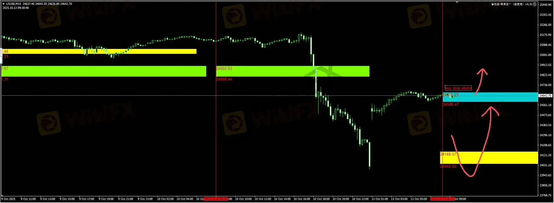 黄金:上周五我们插件提醒黄色区域扫荡流动性之后低买,结果特朗普小作文的原因,价格直接走高。日内我们已经更新了插件提醒,绿色buy limit已经出现了一次机会;另外,保持下方2个黄色区域扫流动性之后的多单尝试。详细位置请咨询插件。