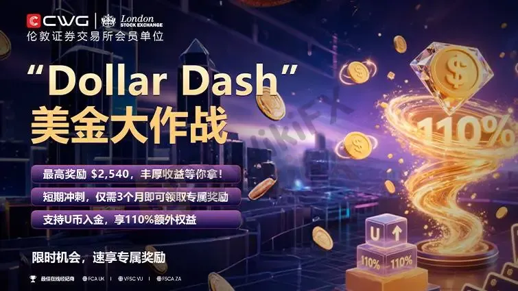 CWG平台倾情推出“Dollar Dash”黄金大作战,邀你一起开启财富之旅!现在参与,不仅有机会赢取$2,540的现金大奖,让你的财富在短短几周内迅速增长!