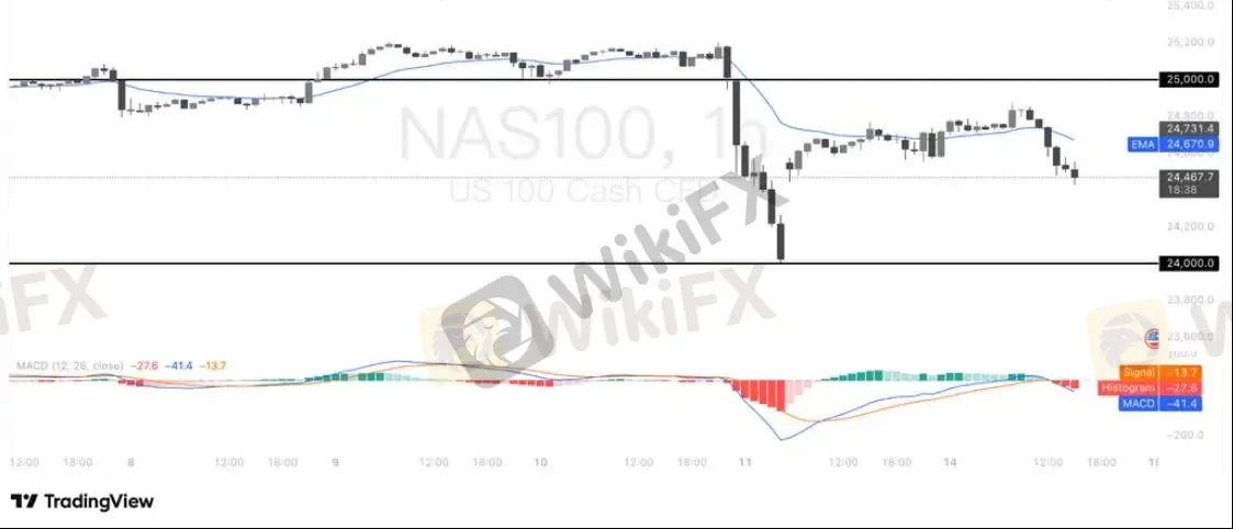 纳指受压25,000关口再度回落,短线关注24,400支撑得失