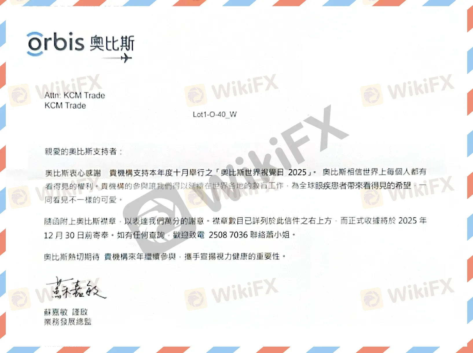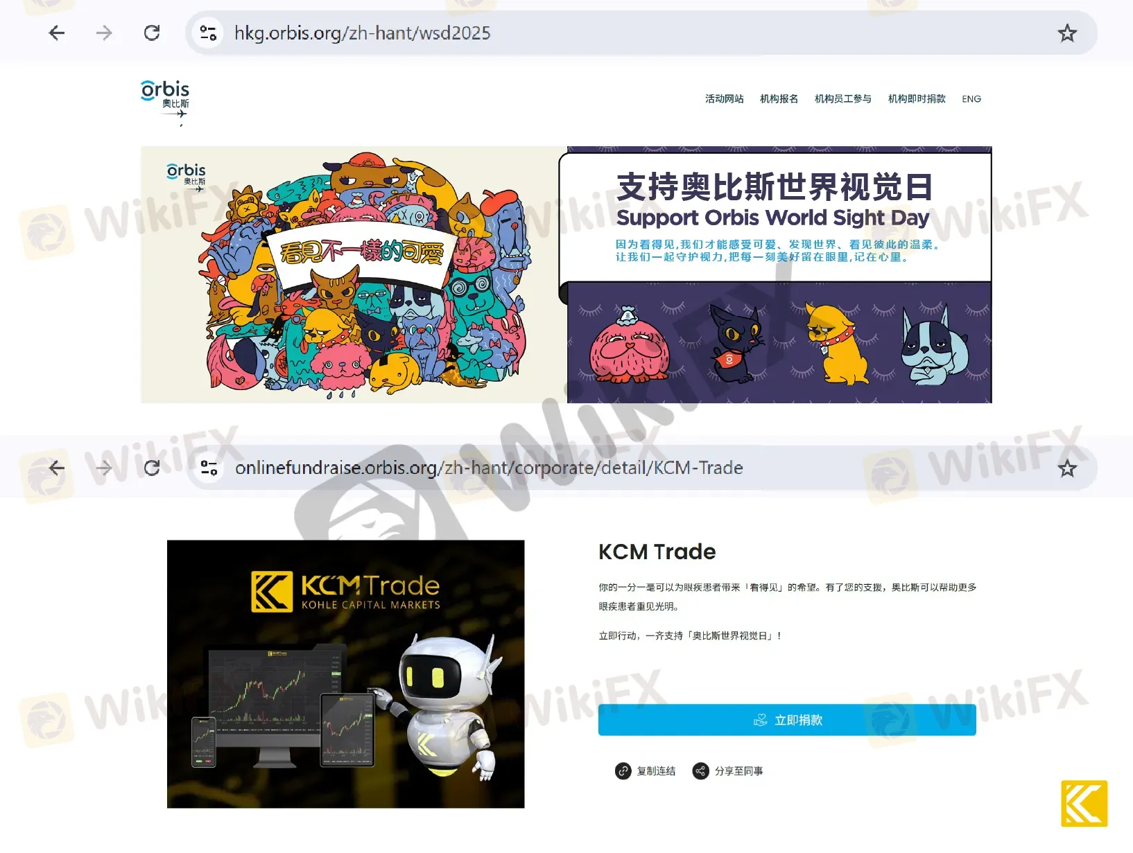 KCM Trade秉持社会责任,积极支持全球人才培养、社区文化交流,关爱儿童及环境保护,足迹遍布香港、澳大利亚、泰国乃至全球。今年,集团更积极参与将于2025年10月9日举办的奥比斯世界视觉日活动。此次活动旨在提升全球对眼睛健康及可预防眼疾的关注,助力贫困地区的需要帮助的人士获得适切的眼疾治疗。
