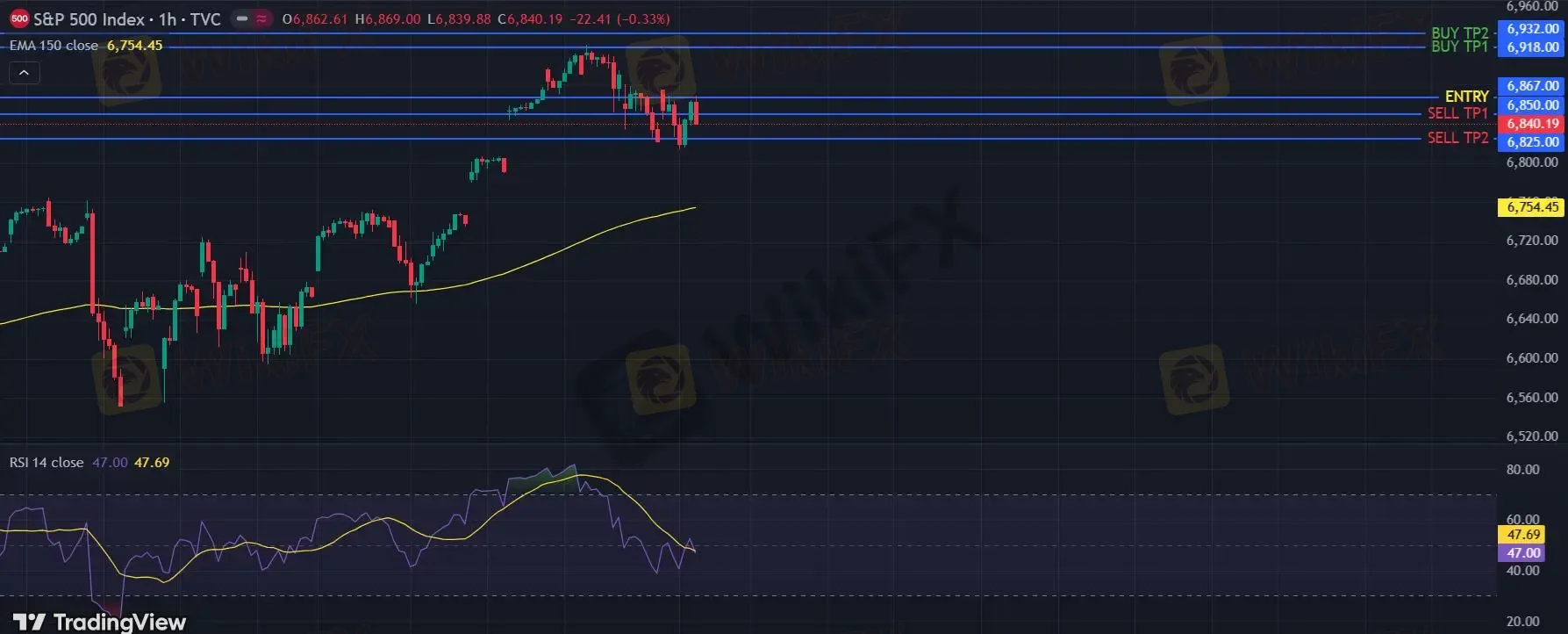在 6867.00 下,看空,目标价位定在 6850.00 ,然后为 6825.00。