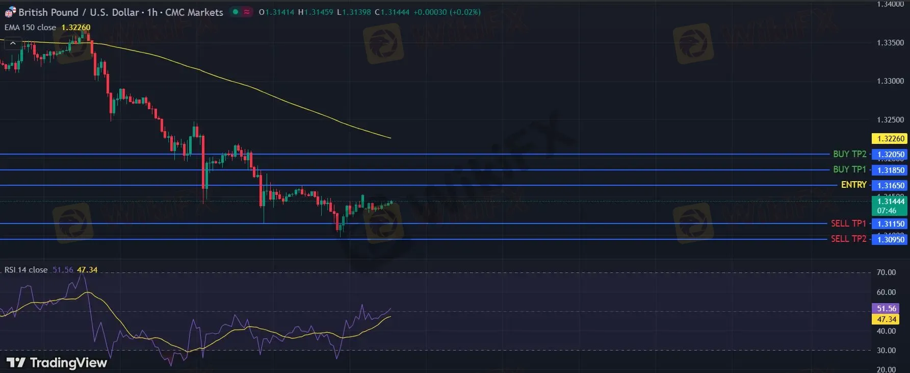 英镑/美元 当日内: 短期关键阻力位在1.3165。