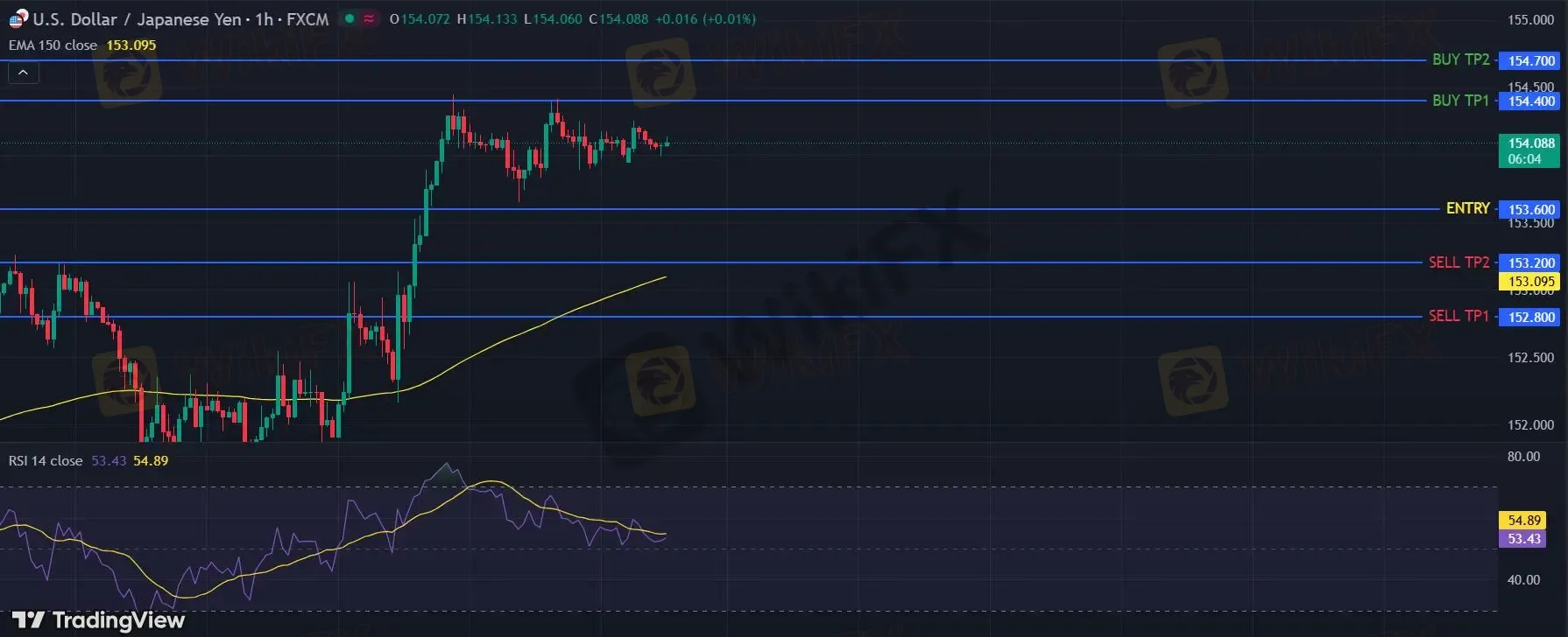 在 153.60 之上,看涨,目标价位为 154.40 ,然后为 154.70 。