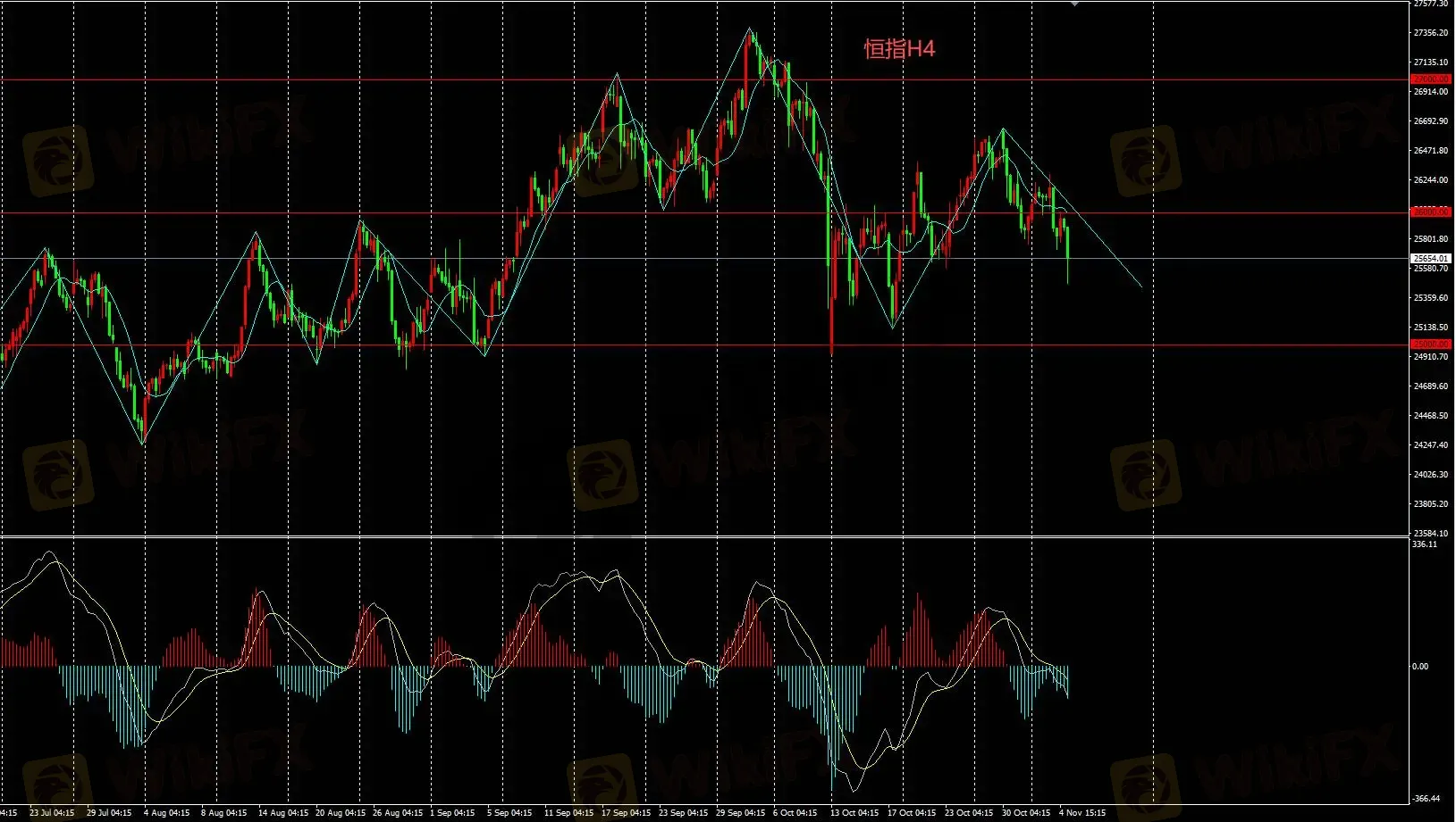 恒生指数昨日失守26000关口后,快速下挫,持续看空。