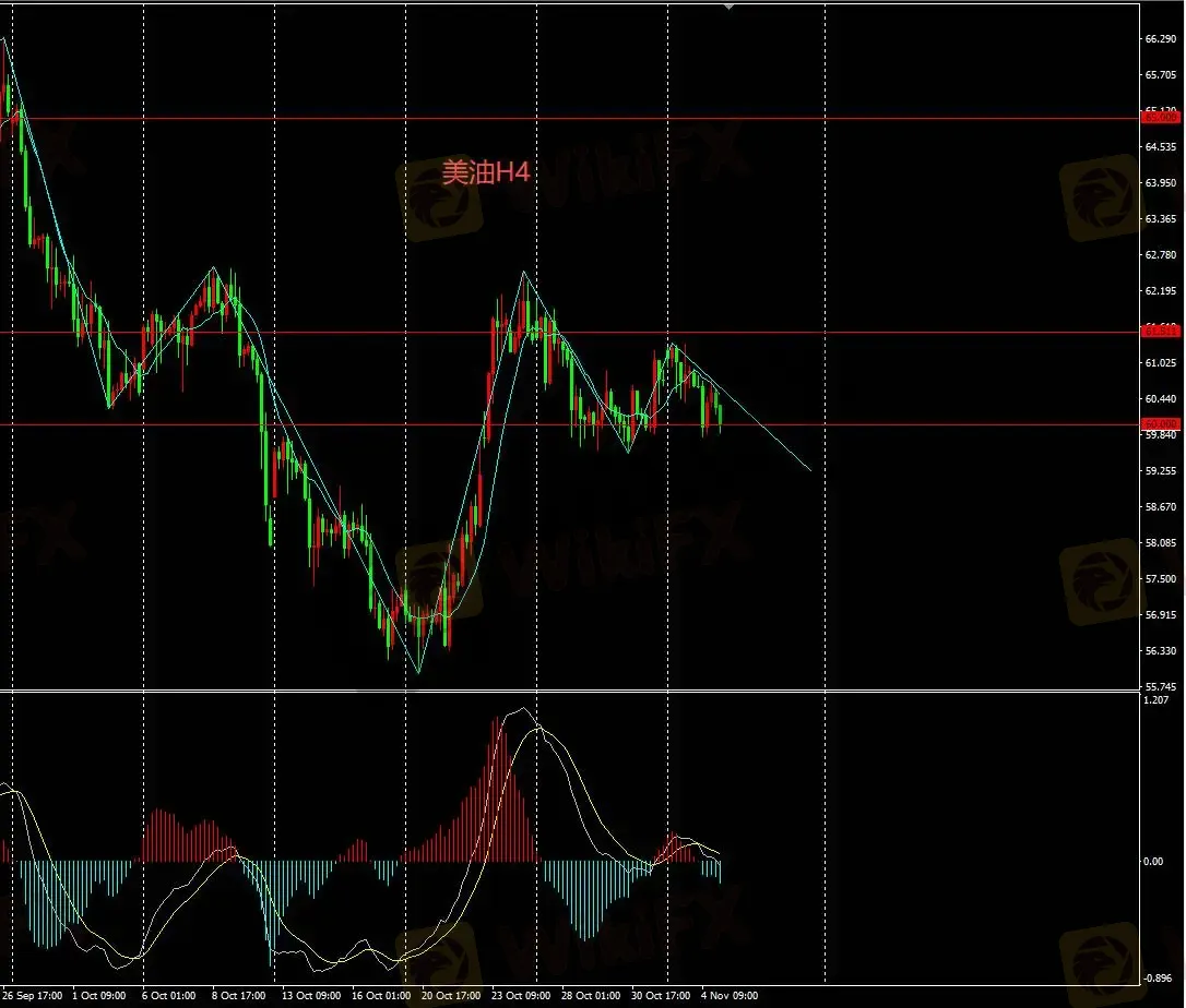 美油价格受阻于61.5后下破至60关口,持续看空;价格再次回落至60关口下方。