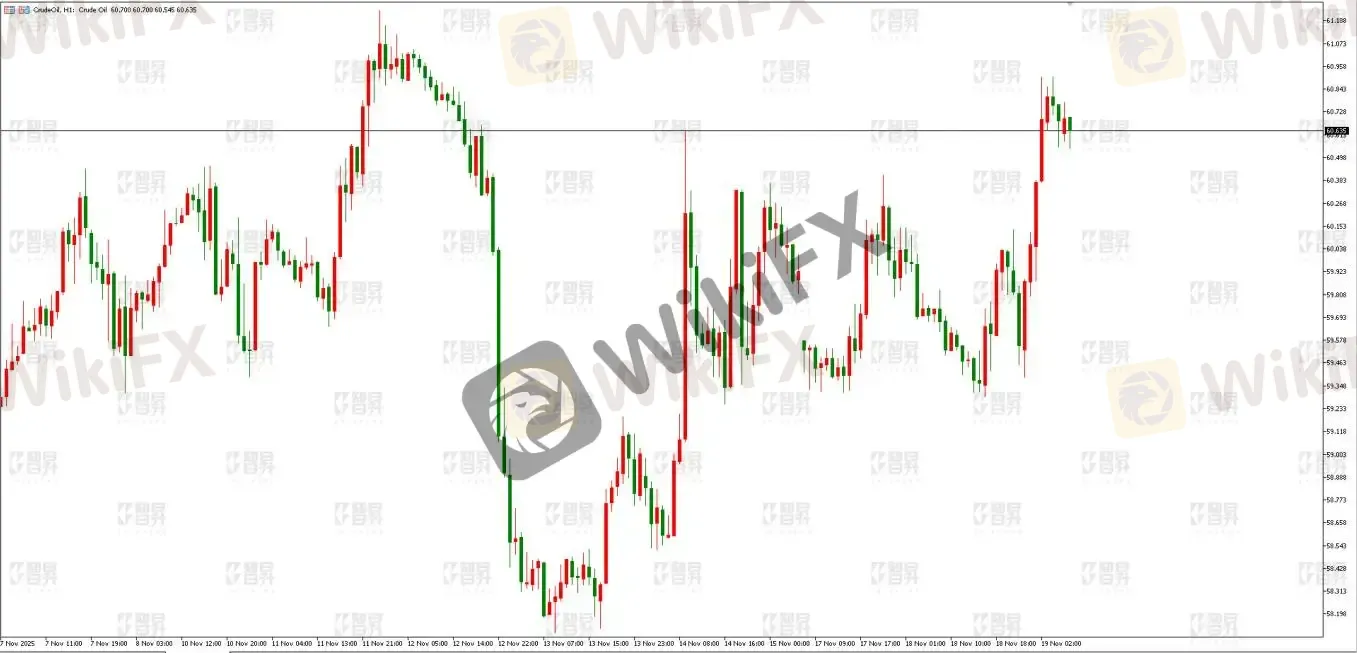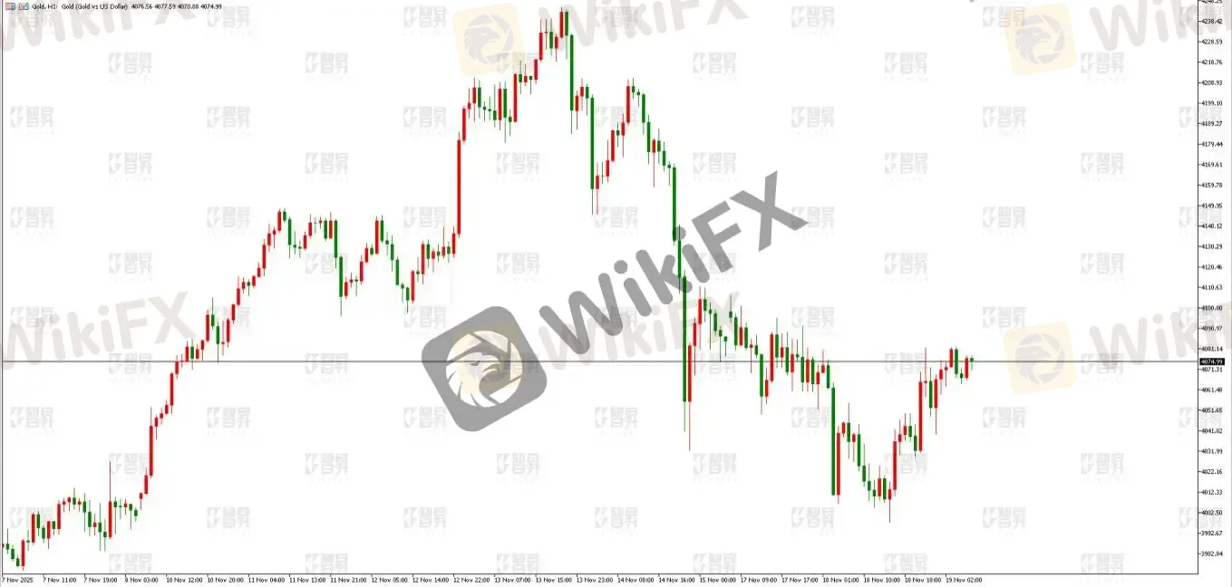 摘要:黄金小时图黄金方面:本轮的下跌,主要原因是近期美联储多位官员相继发表鹰派言论,导致市场降息预期下降。11月初市场一度预期美联储12月降息概率超过80%。短期降息预期快速下降收紧了市场的流动性,推动了美元指数走强也压制了金价。随着11月18日,美联储官员沃勒重申,美联储应在12月会议上再次降息。一定程度上刺激了黄金多头的情绪,促使金价短暂抬升。智昇研究投资策略师麦东认为,黄金价格下跌的持续性不强,市