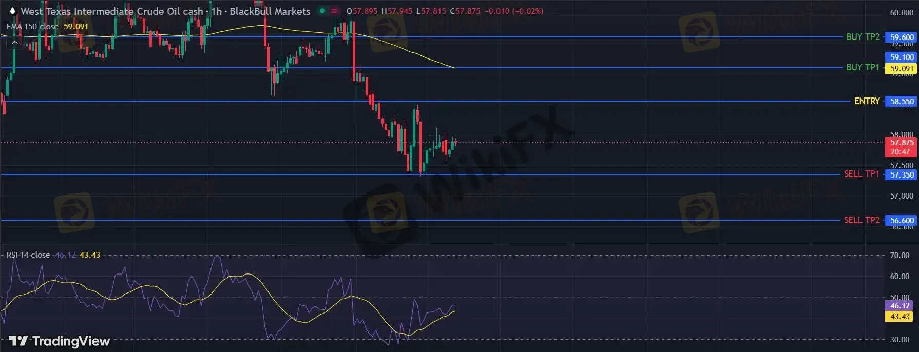 在 58.55 之下,看跌,目标价位为 57.35 ,然后为 56.60 。