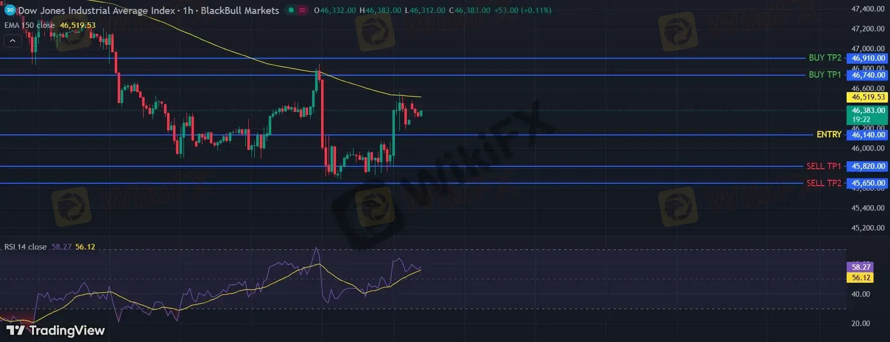 在 46140 下,看空,目标价位定在 45820 ,然后为 45650。