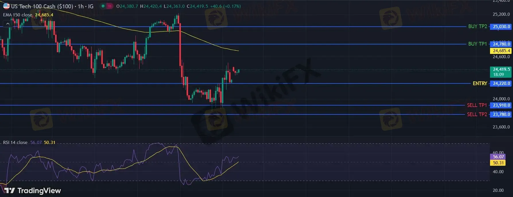 在 24220 之上,看涨,目标价位为 24780 ,然后为 25030 。