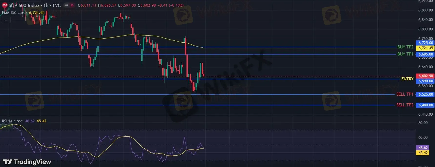 在 6590 下,看空,目标价位定在 6525 ,然后为 6480。