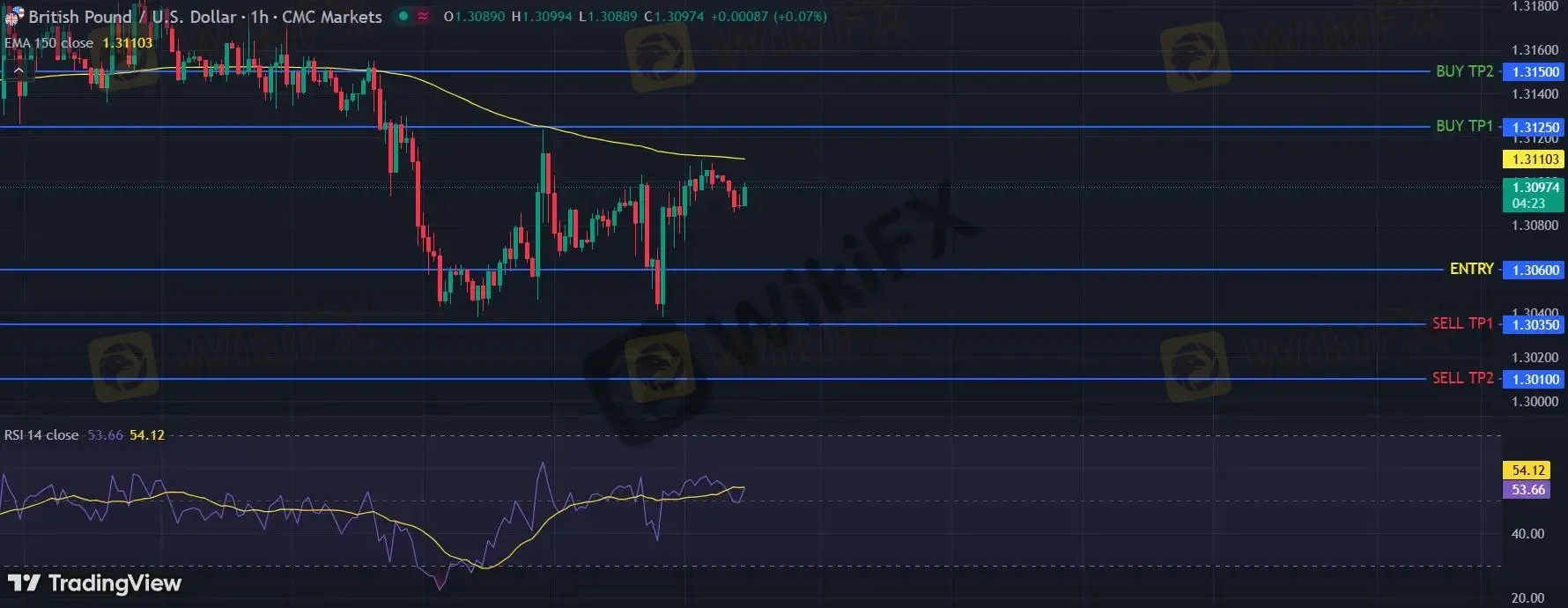 在 1.3060 下,看空,目标价位定在 1.3035 ,然后为 1.3010。