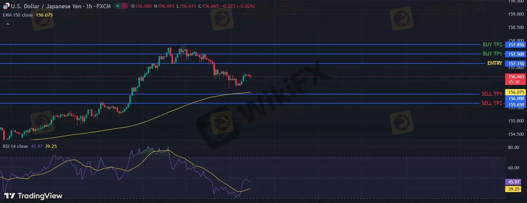 只要依旧存在157.15阻力位,期待回归至156.00。