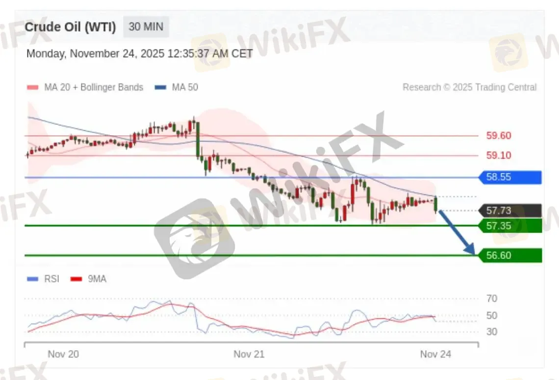 在 58.55 之下,看跌,目标价位为 57.35 ,然后为 56.60 。