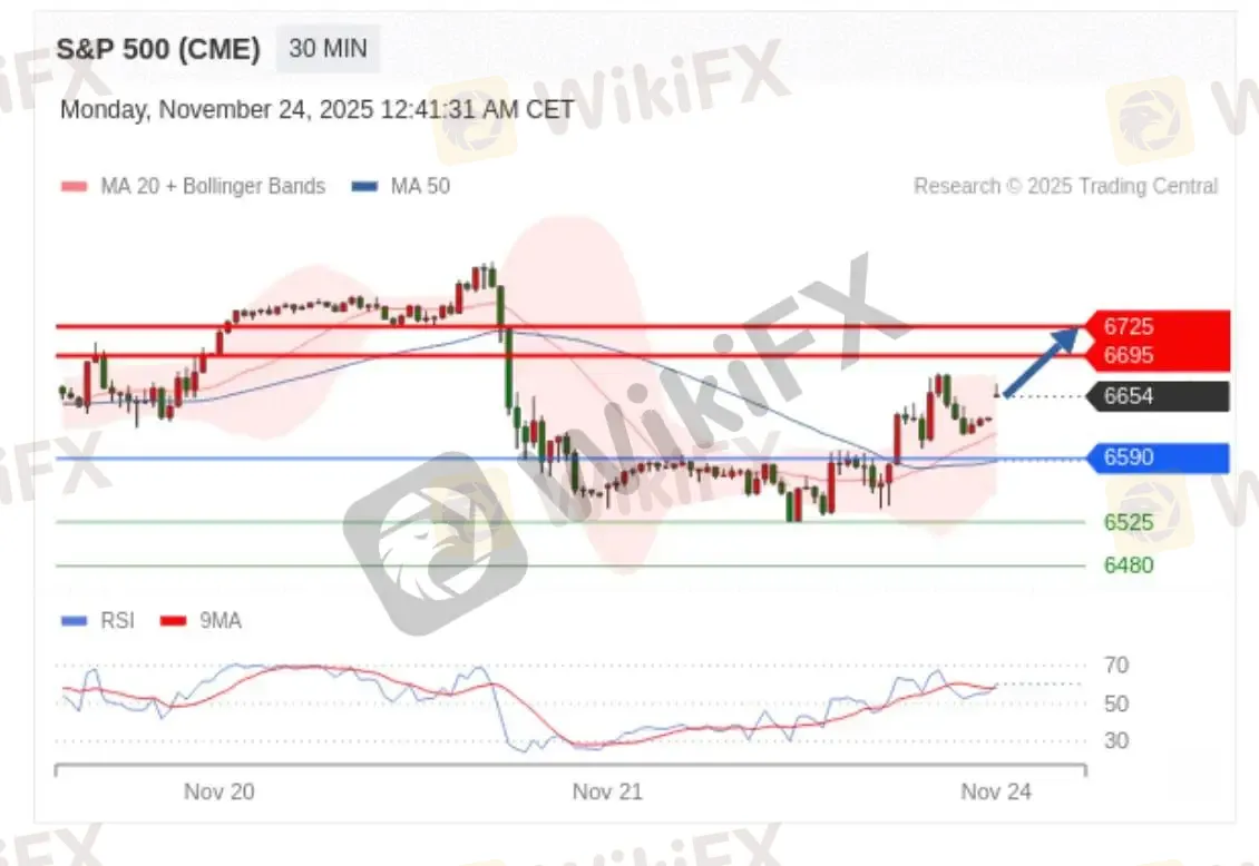 在 6590 之上,看涨,目标价位为 6695 ,然后为 6725 。