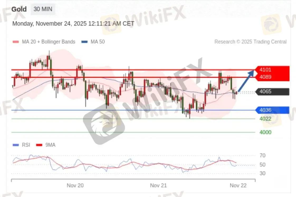 黄金现货 当日内: 超短线(当日内)支撑位在4036附近。