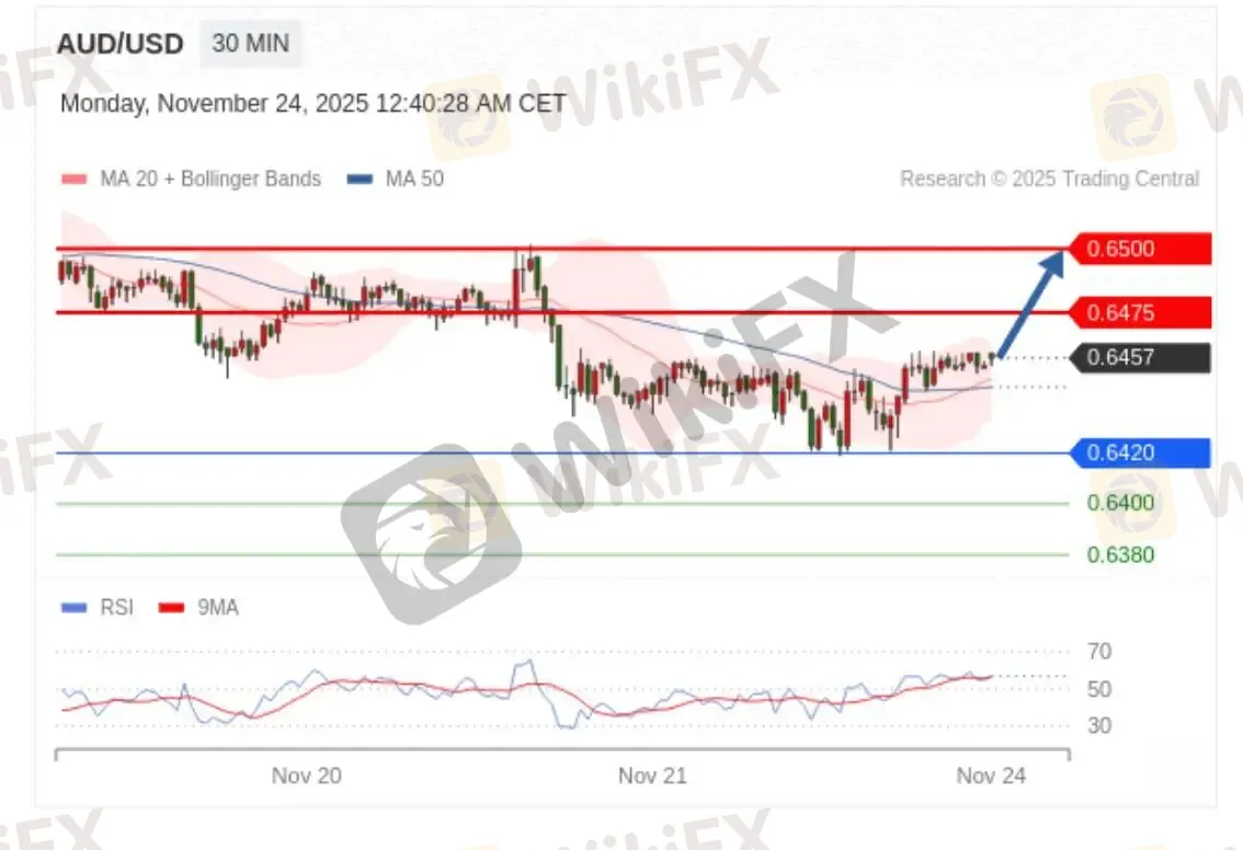 在 0.6420 之上,看涨,目标价位为 0.6475 ,然后为 0.6500 。