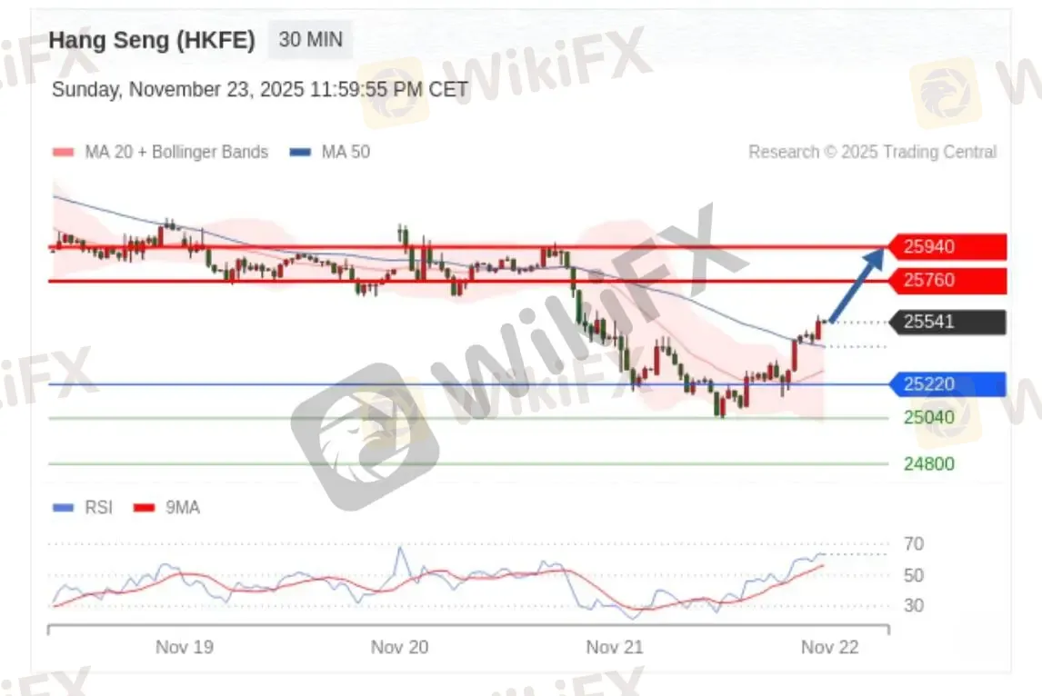 在 25220 之上,看涨,目标价位为 25760 ,然后为 25940 。
