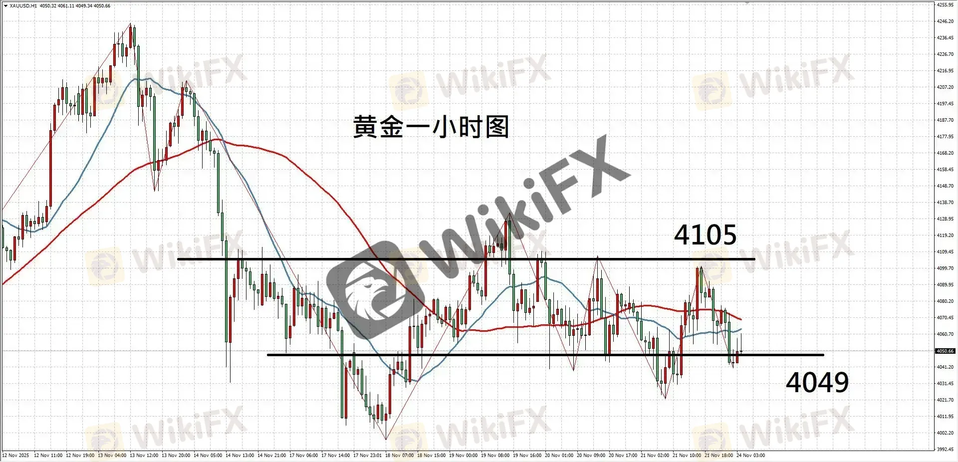 摘要:【基本面分析】受美联储票委威廉姆斯的鸽派言论带动,周五黄金收复部分跌幅。数据方面,在10月非农取消发布之后,10月CPI同样遭到取消,11月数据也延后至12月18日公布,这代表美联储12月11日会议前将继续在缺乏关键数据的情况下决策。信息真空加剧政策不确定性,预计贵金属市场的波动性将进一步放大。【技术分析】黄金一小时图,走势上涨未突破压力,但下跌也未破底,整体表现趋于震荡;故建议稳健者观望,激进者