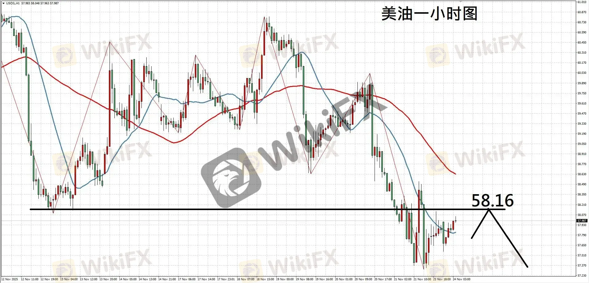 操作建议:建议58.16短空,止损58.56以上,目标57.38。