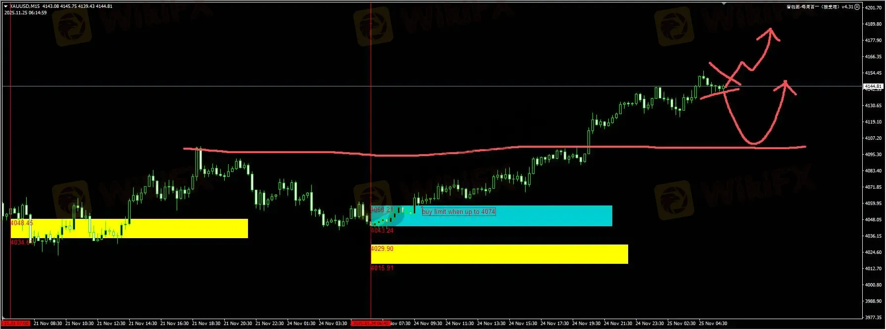黄金:昨天我们蓝色区域突破之后,没有出现预期的回踩。不过金价收复4100/4120区域,打开了进一步反弹的空间。日内我们同时关注动能上破的直接信号;以及回踩4100/4090附近支撑区域的企稳信号。详细位置请咨询插件。