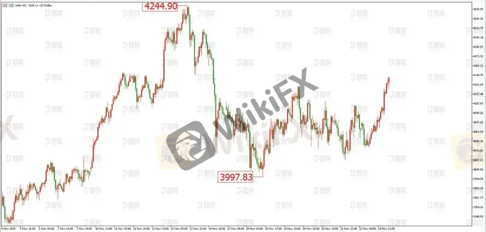 摘要:黄金小时图黄金方面:上周四(11月20日)公布的美国9月非农数据表现好于预期,但7月和8月的非农惨遭下修,失业率上升至4月以来的最高水平。美联储内部对于降息的观点分歧越来越大,导致近一个月降息的概率一度从90%以上下降至40%。纽约联储主席威廉姆斯表示,短期内仍有进一步降息的空间,被市场解读为12月份仍可能会降息,降息概率快速反弹至70%以上。智昇研究黄金高级分析师欧文认为,今天将公布美国PPI数