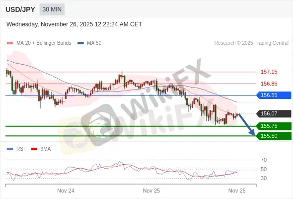 在 156.55 之下,看跌,目标价位为 155.75 ,然后为 155.50 。